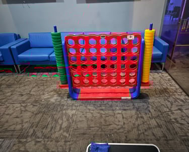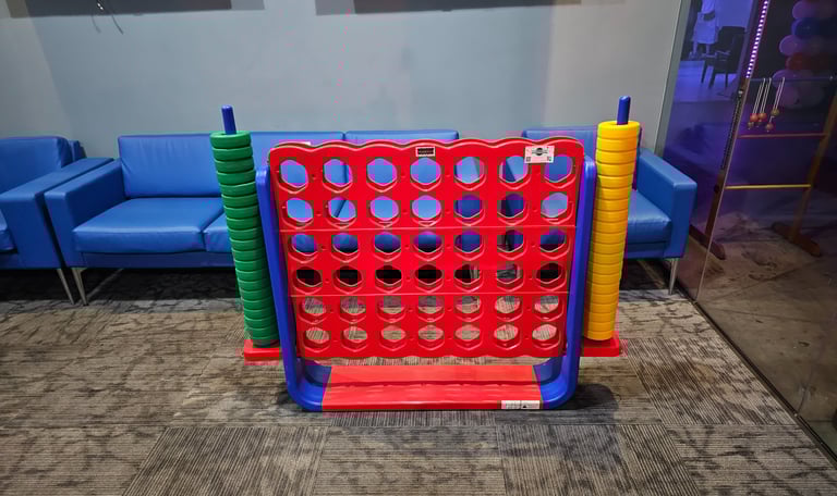 A supersized twist on the beloved strategy game! Compete head-to-head to connect four pieces in a row before your opponent.
