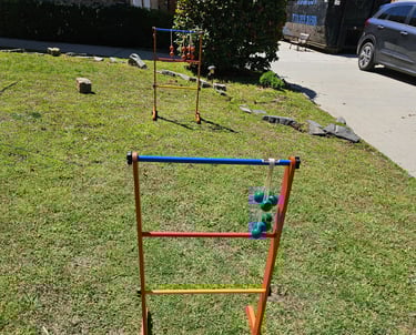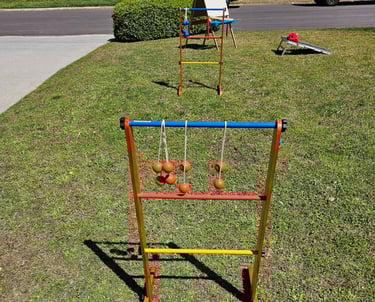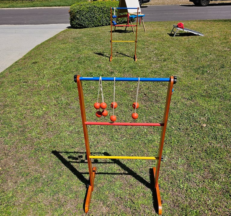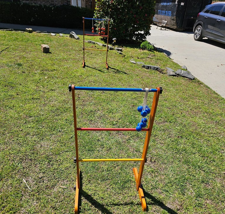 A fun and challenging toss game where players throw bolas onto a tiered ladder to score points.