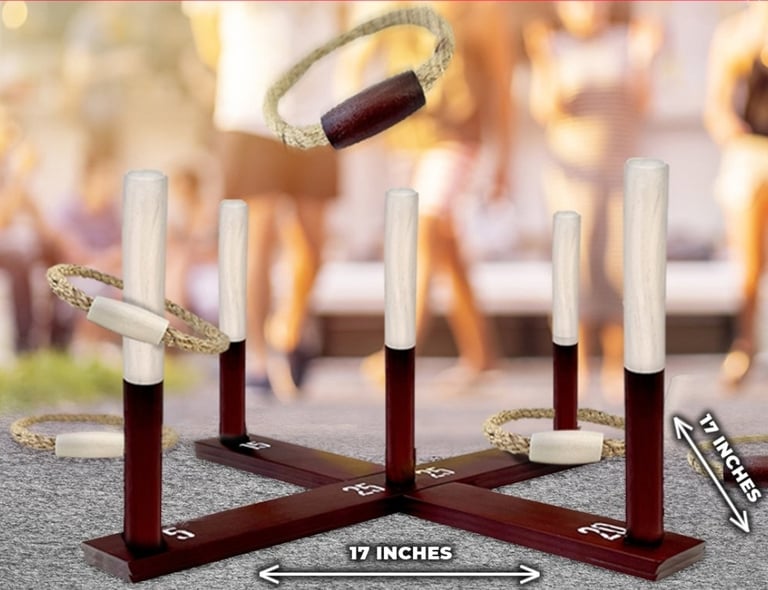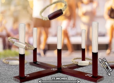 A fun and classic game of aim and accuracy! Toss oversized rings onto pegs to score points—simple, addictive, and perfect for guests of all ages.
