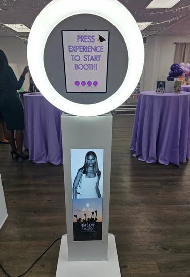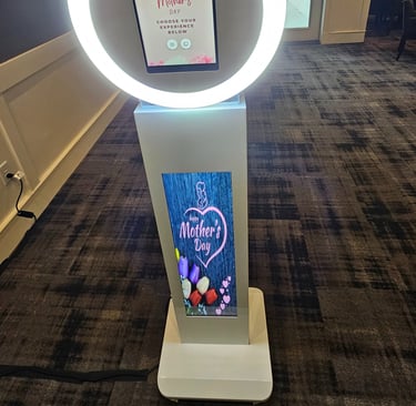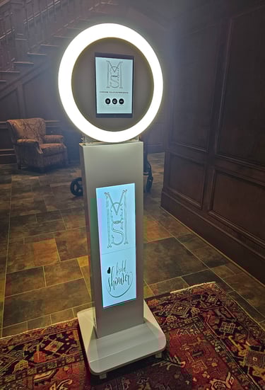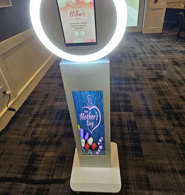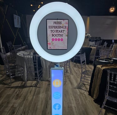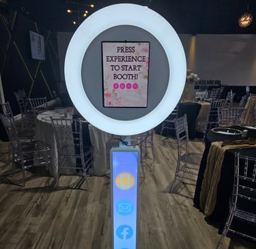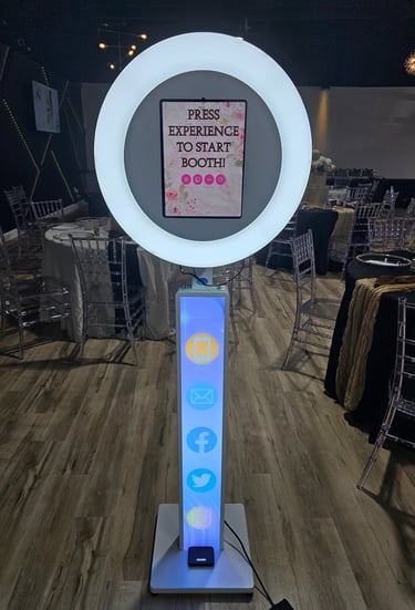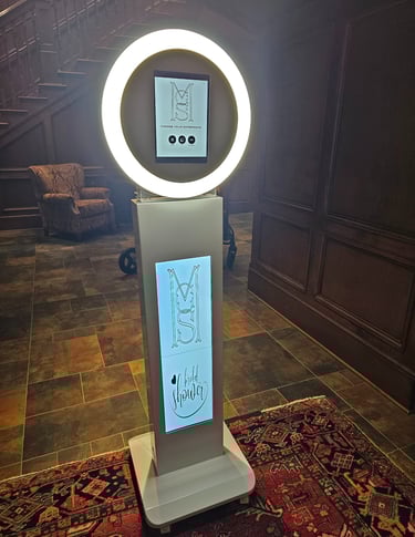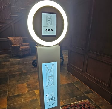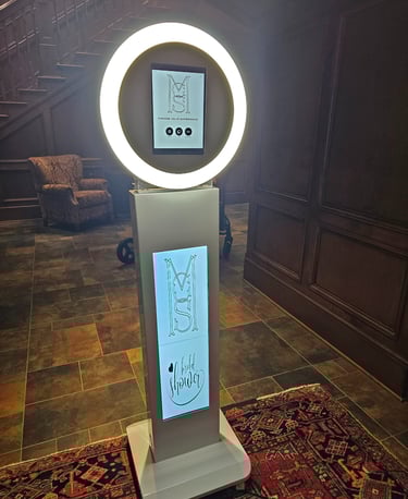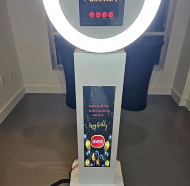 Our Photo Booth features a stunning12.9 inch touchscreen display and bright Ring Light.