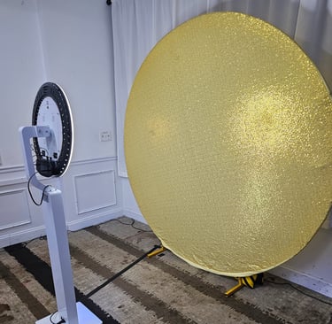 Circular 7.2ft x 7.2ft Sequin Backdrop in Gold or Silver Shimmer colors - $50.