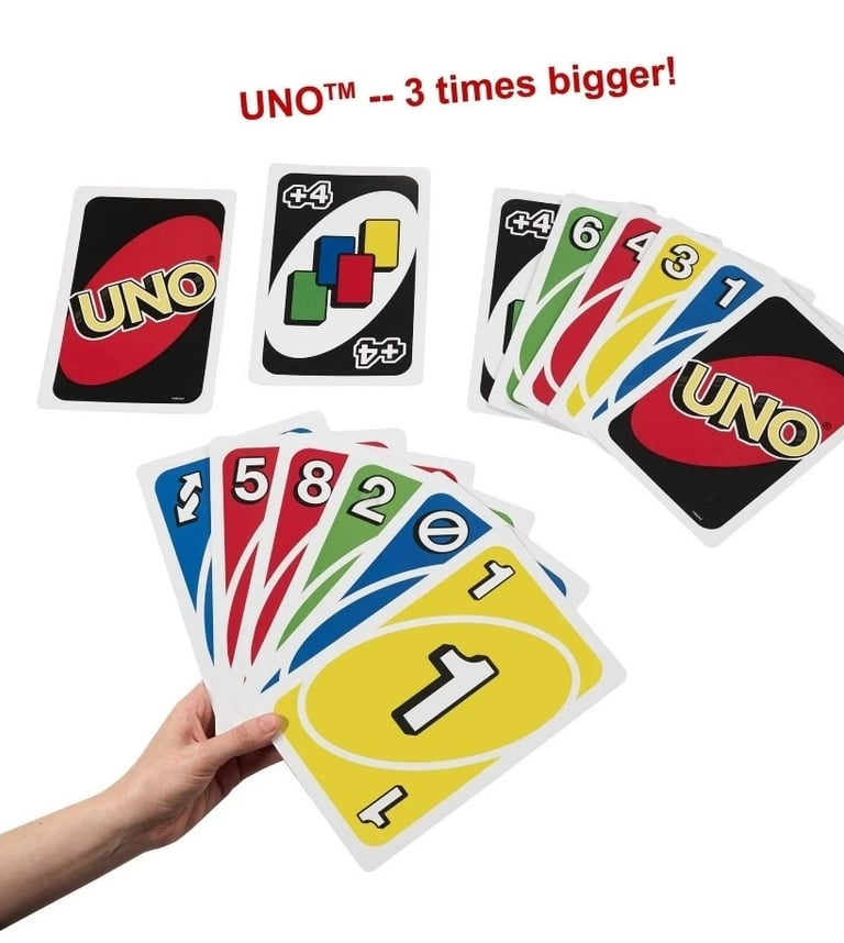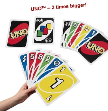 A larger-than-life version of the classic card game! Play your favorite UNO with jumbo cards for big laughs and bold moves—perfect for groups and all ages.